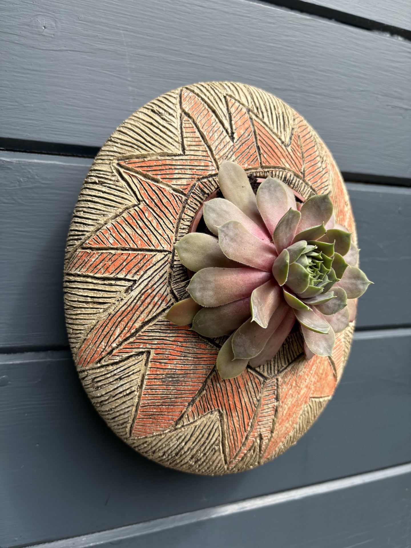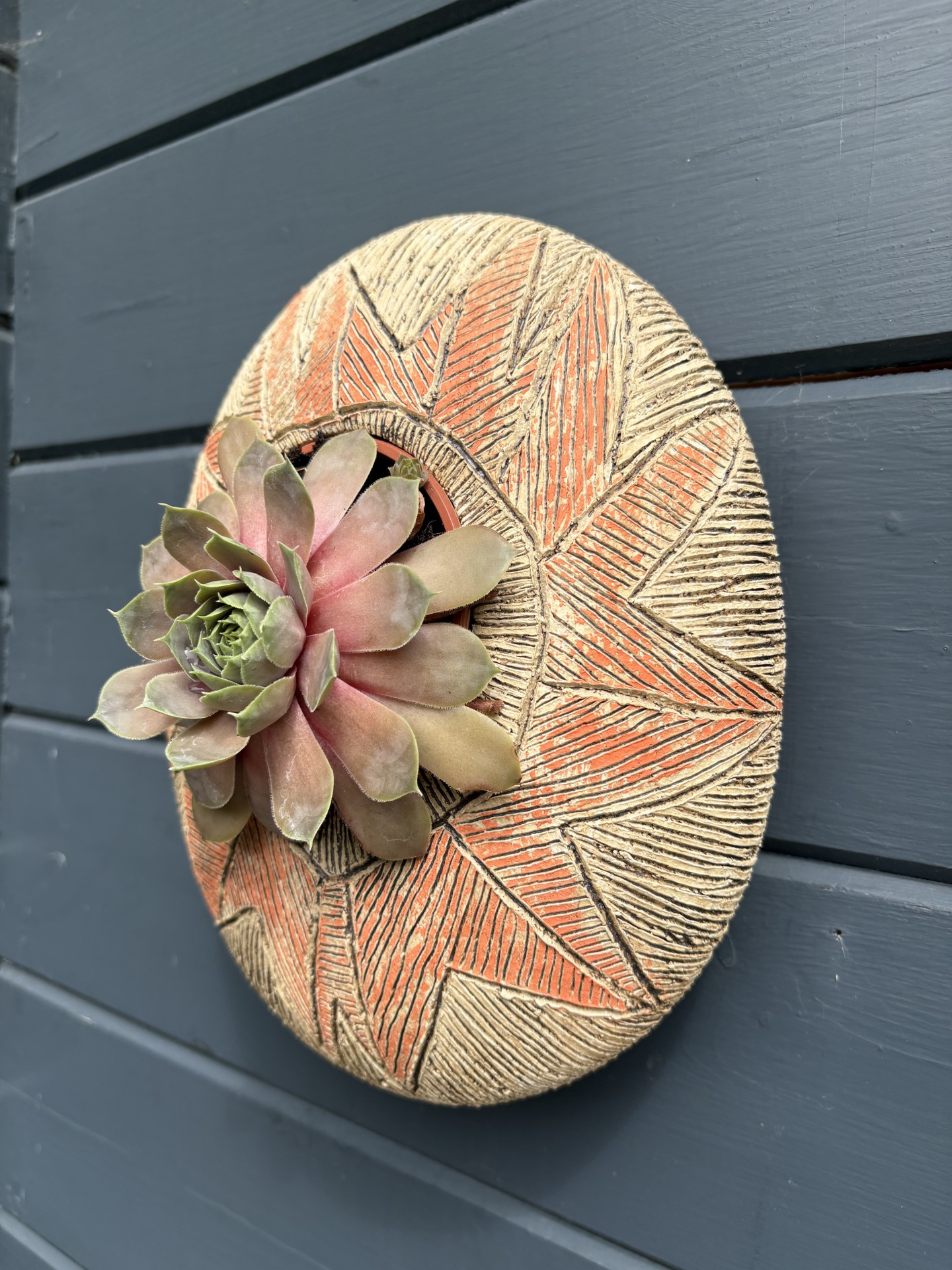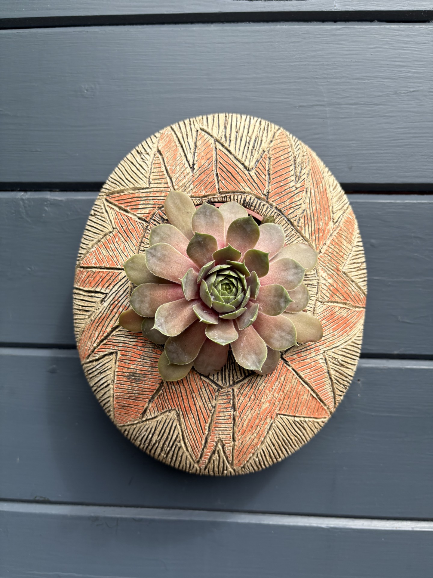 SGV277 – Oval Pod – Chevrons – 22x26cm – Drainage holes for planting Keyhole for wall mounting