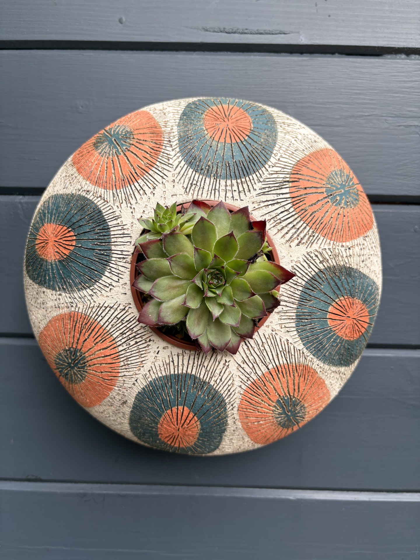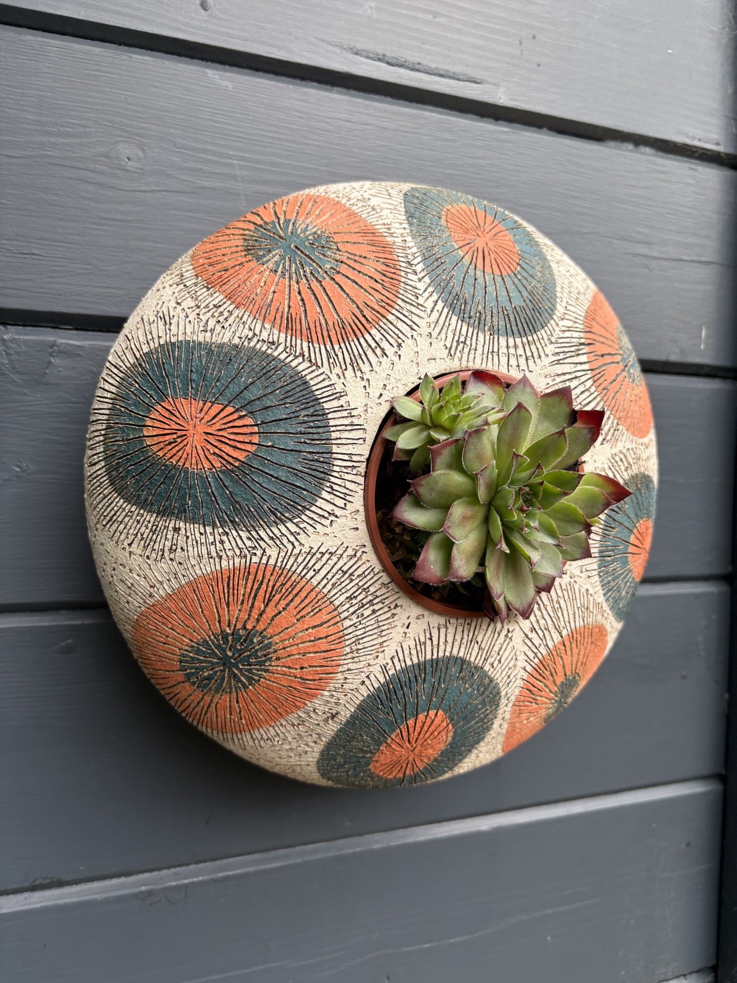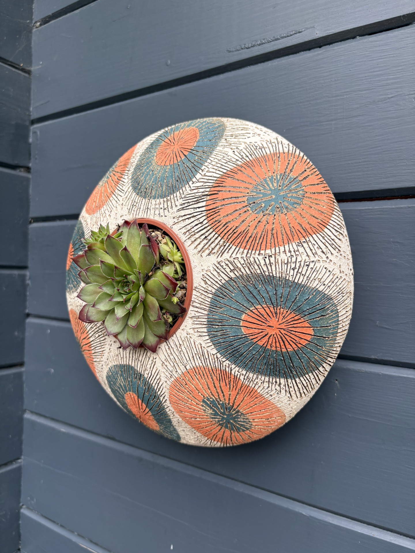 SGV287 -Round Pod – Coral reef – 28cm diameter Drainage holes for planting Keyhole for wall mounting