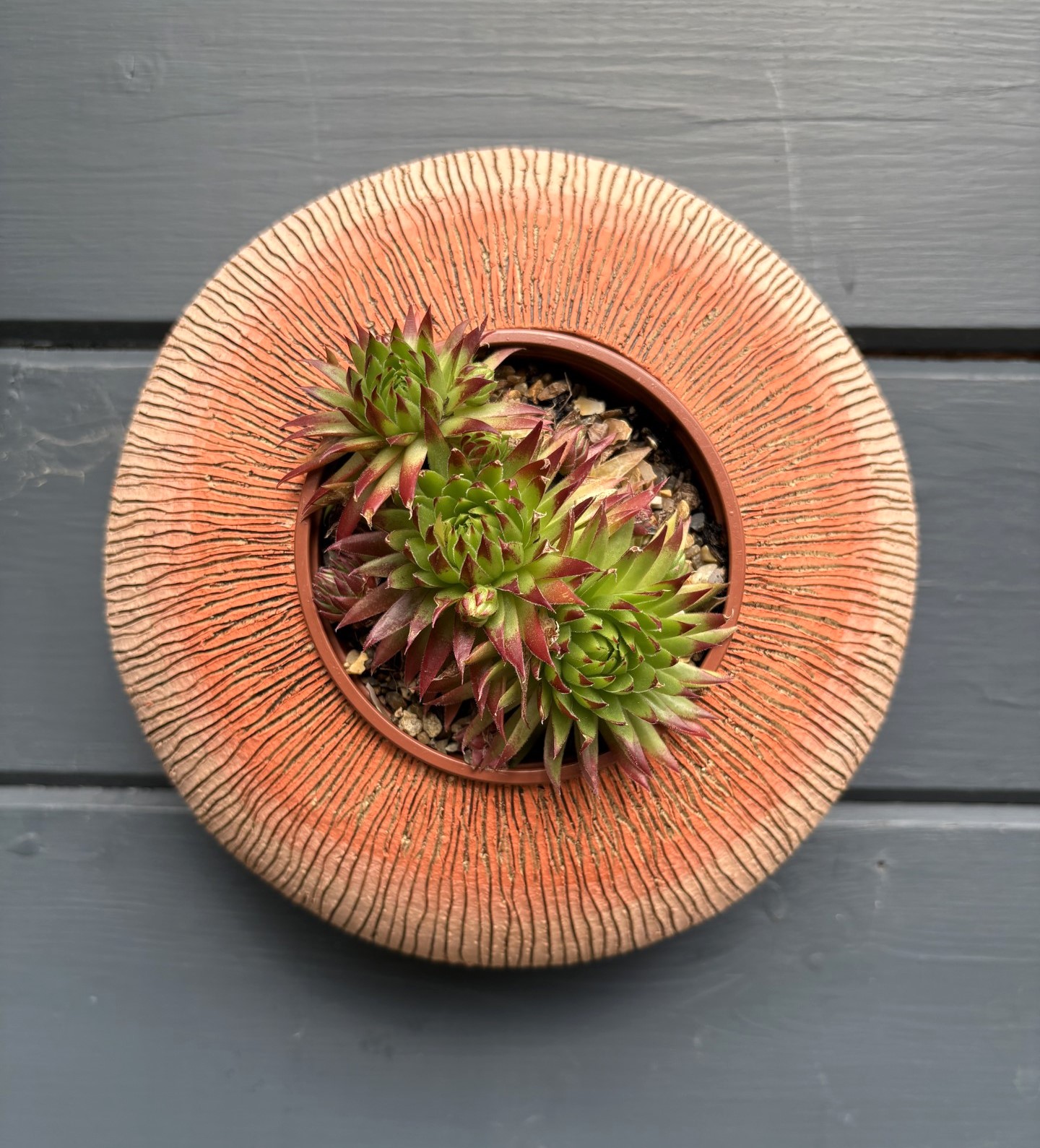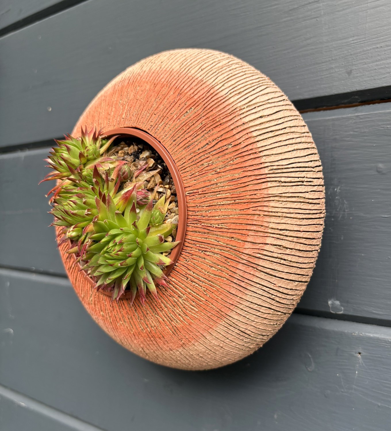 SGV295 – Small Round Pod – Sunrise 22cm diameter Drainage holes for planting Keyhole for wall mounting