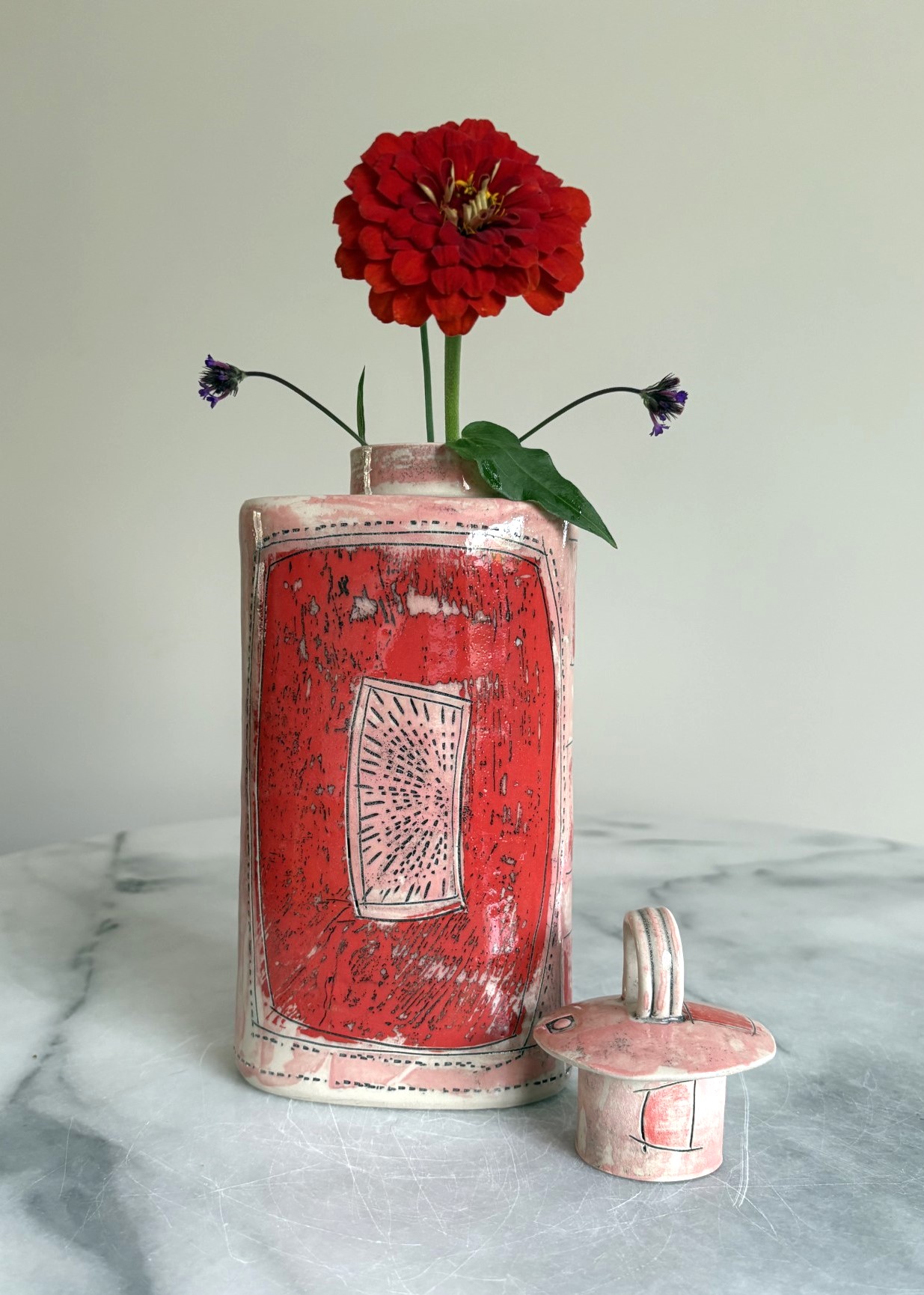 SHC103 Tall Flower Flask -Crimson – 20 tall x11cm wide