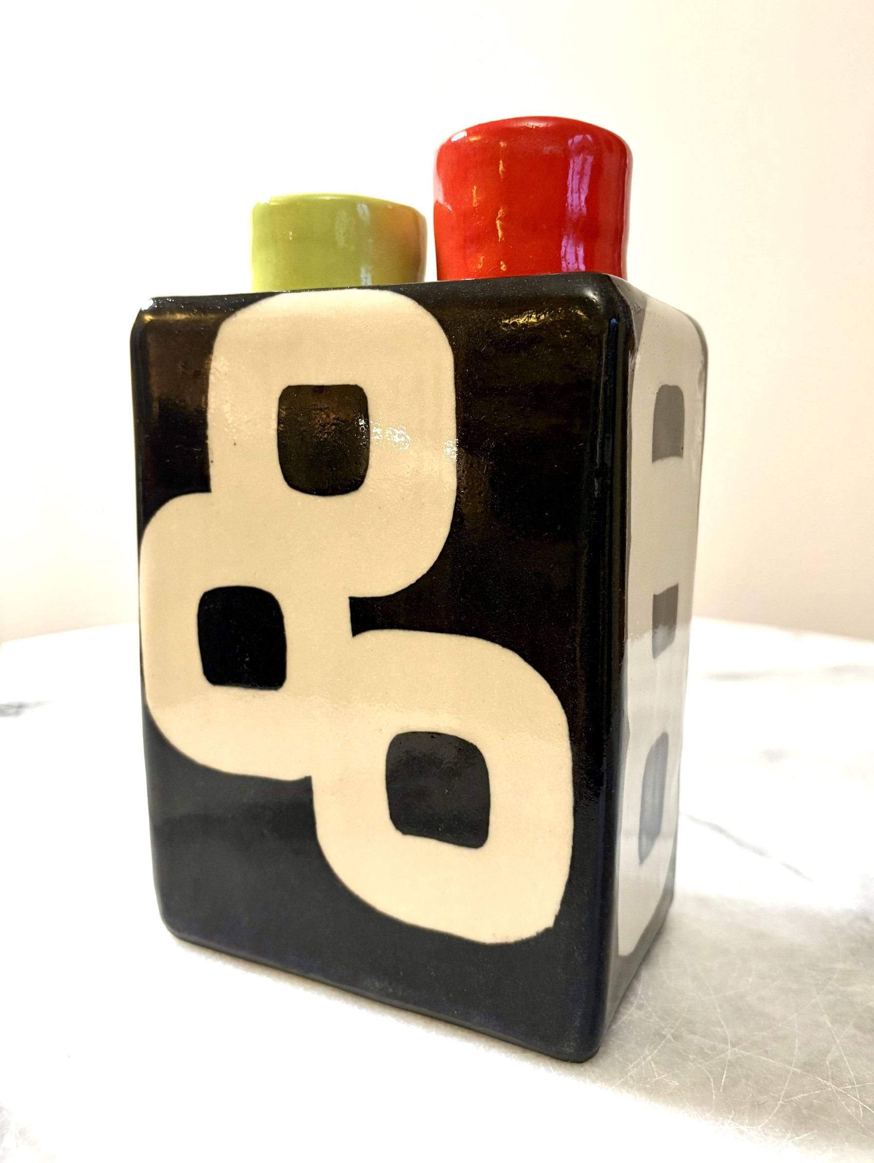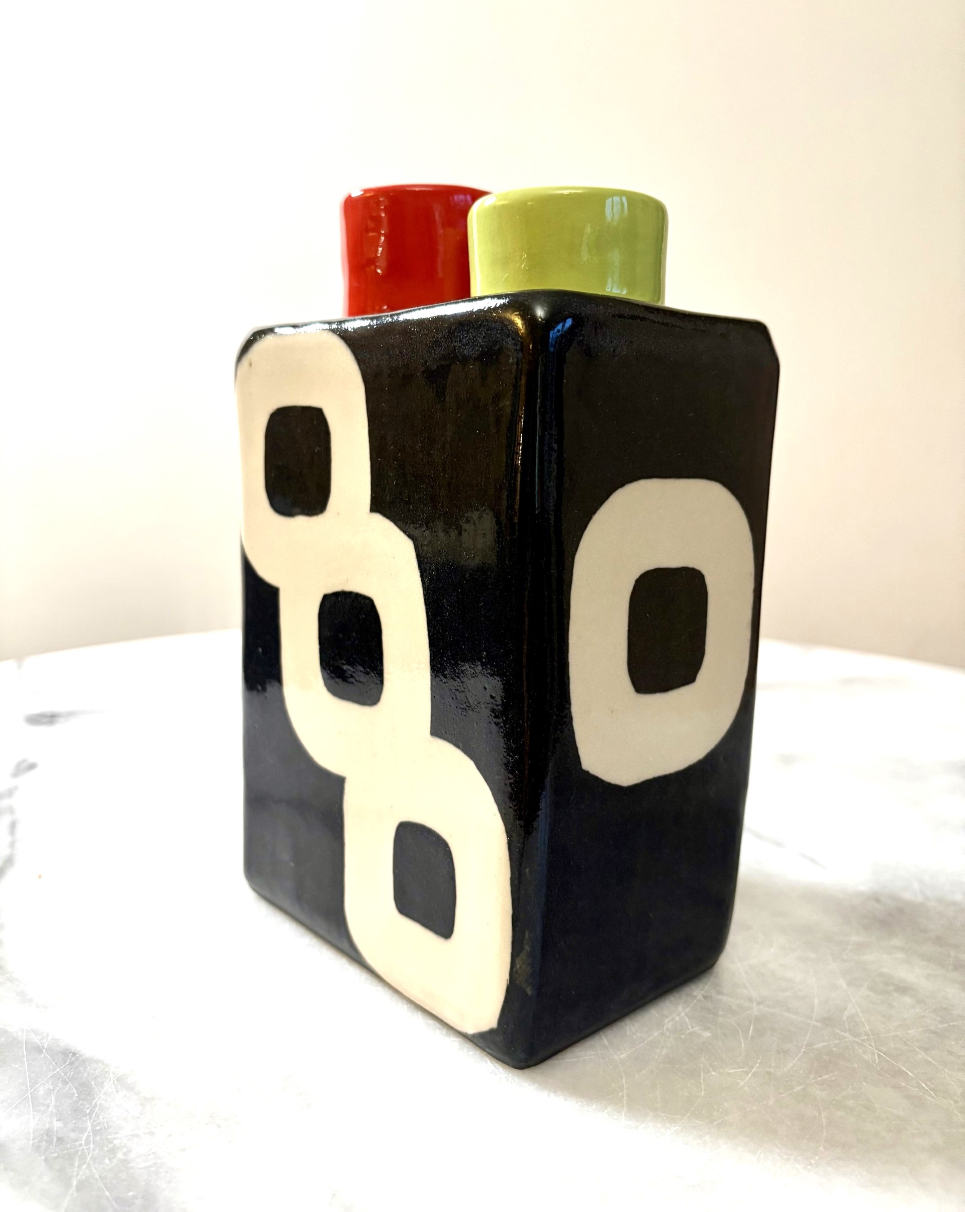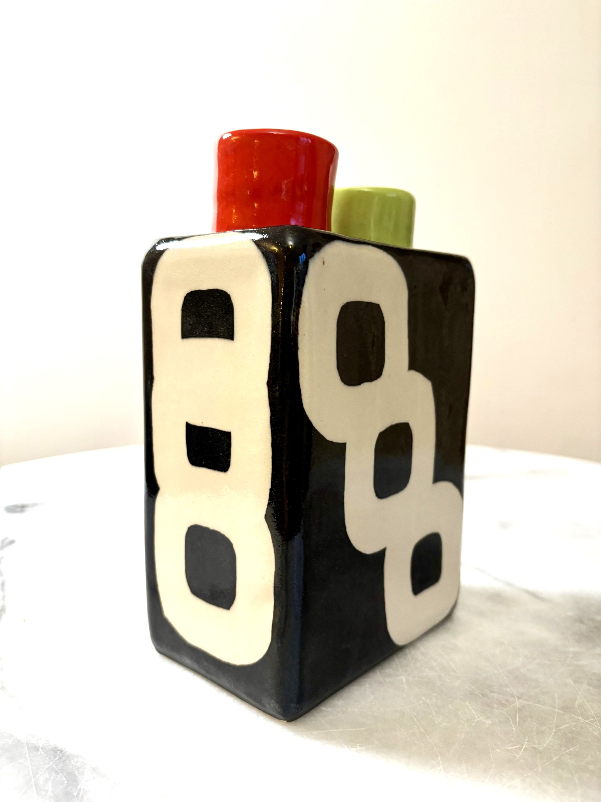 SHC137 -Slim Black & White flower flask – 17cm tall x12cm wide x 8cm deep